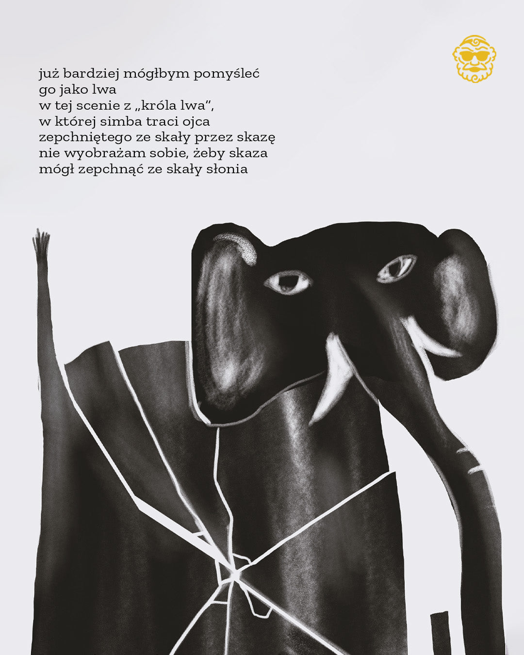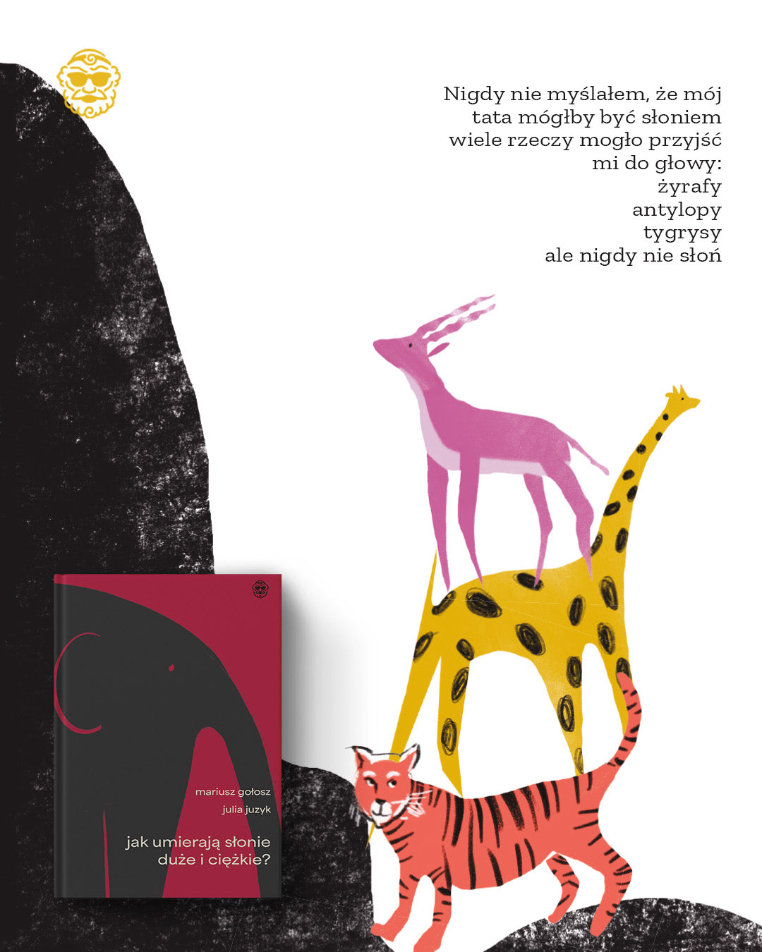 Jak wielu moich bliskich i znajomych, o śmierci rozmawiam rzadko. Albo wcale. No, dobra: wcale. I to nigdy nie kończy się dobrze – zazwyczaj atakami paniki i samotnością. A śmierć i żałoba – jak przypomina drobna, ekstremalnie wzruszająca książka Gołosza i Juzyk – są czymś trudnym, lecz naturalnym, wspólnym nam wszystkim: istotom z porządku świata ludzi i porządku świata słoni. jak umierają słonie duże i ciężkie? przypomniała mi, że śmierci najlepiej towarzyszyć wspólnie – i że to samo dotyczy także życia. Gołosz pisze o słoniach (i przecież też o ludziach) najpiękniej, bo najprościej. Słonie… czytałam wielokrotnie, za każdym razem z coraz bardziej poluzowanym gardłem, bo choć pisanie w blurbie o głośnym płaczu może brzmieć kiczowato, to właśnie tak się stało. Scena z lekcji angielskiego zostanie ze mną już na zawsze.